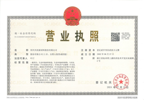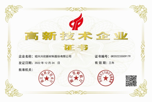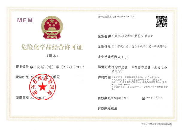 紹興興欣新材料股份有限公司成立于2002年06月27日,占地面積122畝,位于杭州灣上虞經(jīng)濟(jì)技術(shù)開發(fā)區(qū)拓展路2號(hào),現(xiàn)有職工200余人,專業(yè)技術(shù)人員50余人;博士、碩士研究生30余人組成的一支知識(shí)型、專業(yè)化的技術(shù)科研團(tuán)隊(duì)。公司面向全球市場(chǎng),專業(yè)開發(fā)電子化學(xué)品、環(huán)?;瘜W(xué)品、醫(yī)藥中間體、高分子材料等先進(jìn)新材料重點(diǎn)領(lǐng)域的省級(jí)科技型企業(yè);建有浙江上虞、安徽東至兩個(gè)生產(chǎn)基地。目前為“國(guó)家高新技術(shù)企業(yè)”、浙江省“隱形冠軍”企業(yè)、浙江省專精特新中小企業(yè);建有“省級(jí)”研究開發(fā)中心,共建天津大學(xué)浙江紹興研究院電子化學(xué)品研發(fā)中心。